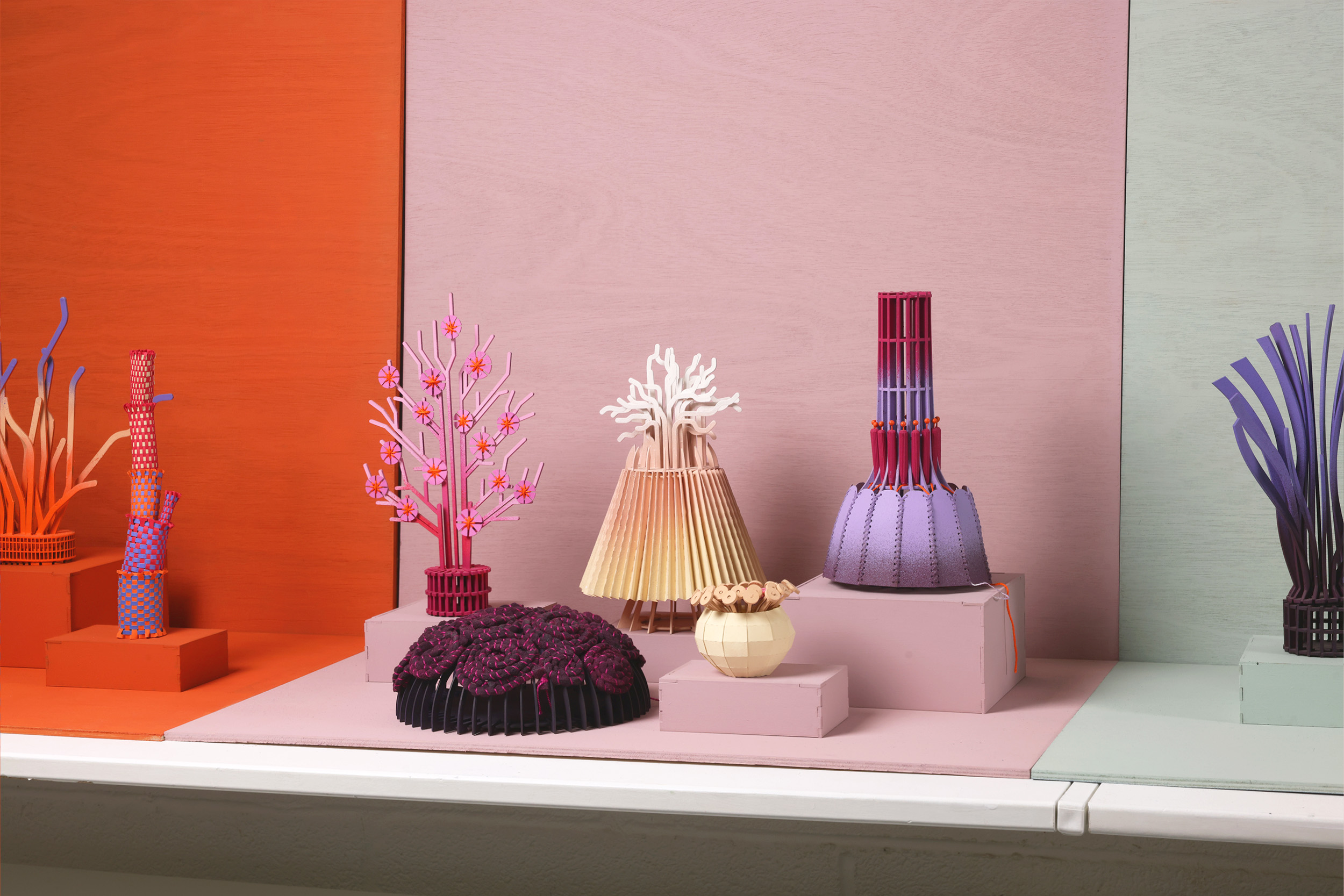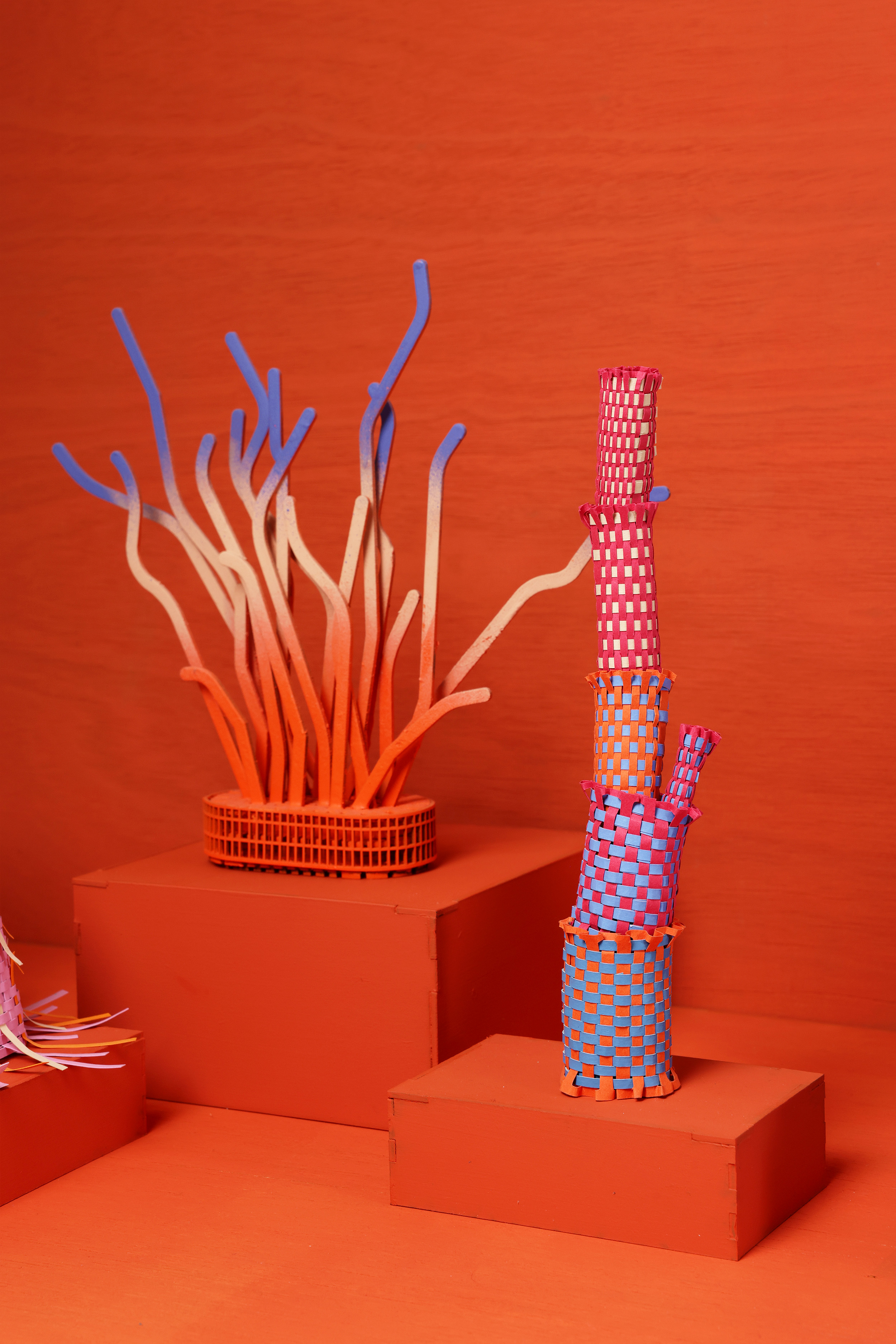 The project explores transformation, circular making, and the poetics of accumulation. By recontextualising discarded matter, the sets propose a sculptural language that is playful, adaptive, and environmentally conscious, where display and object become inseparable parts of the same system.