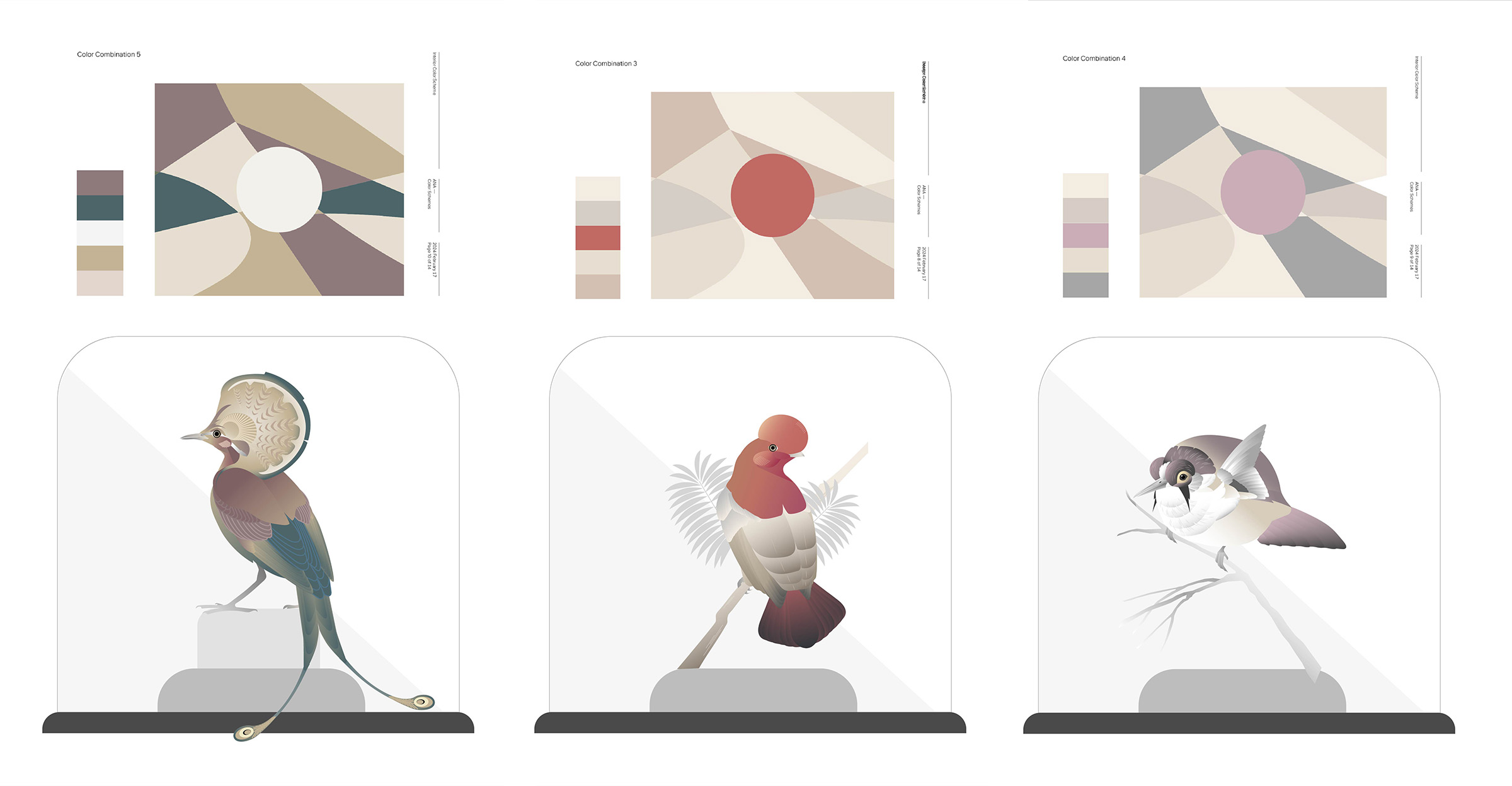 A bespoke commission for a private luxury residence in Costa Rica. As part of the collection of art that will decorate each location, a selection of 5 mysterious birds were created for this project. Each bird has a name and description inspired by real species from the region, but with a magical and unexpected twist.