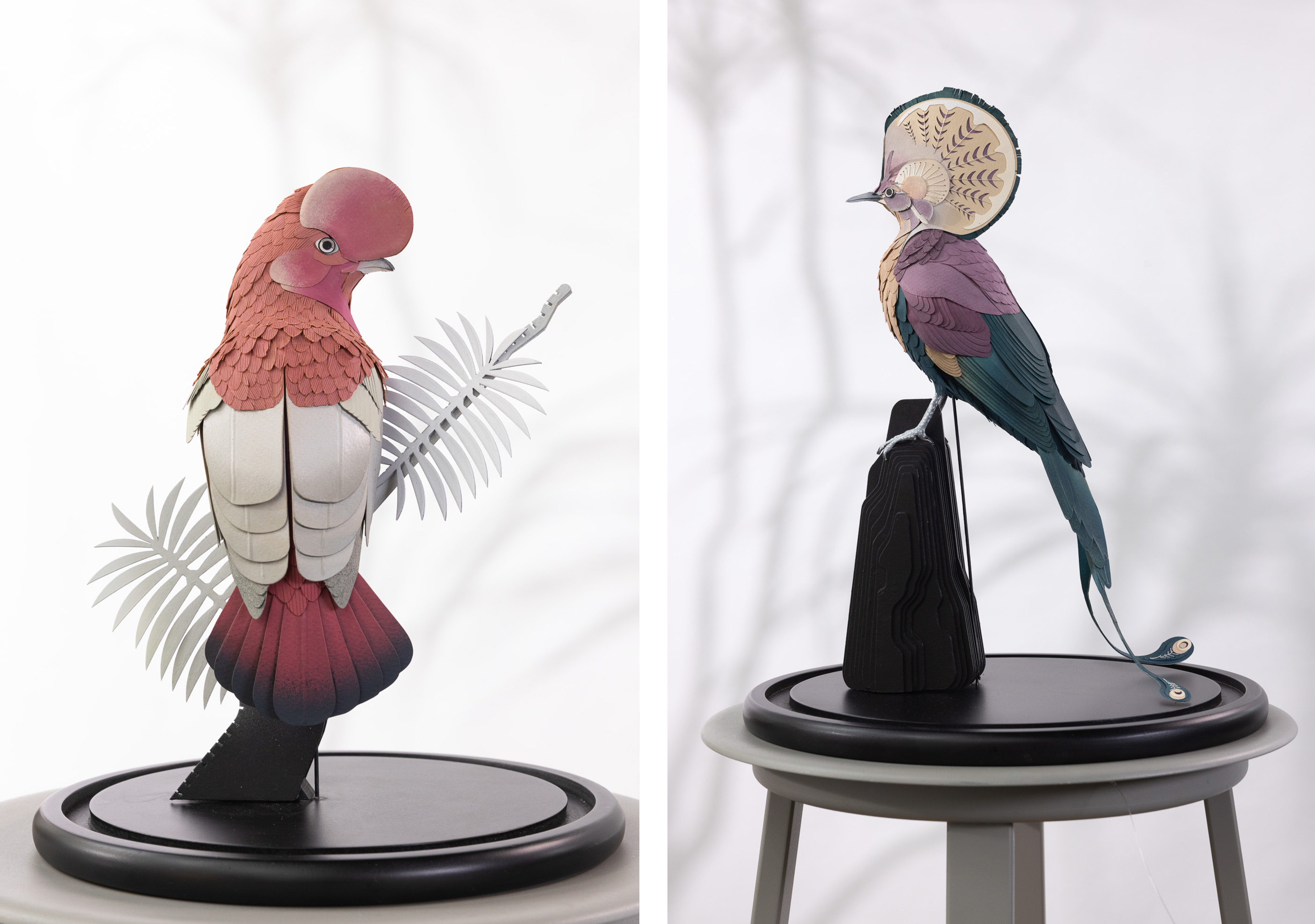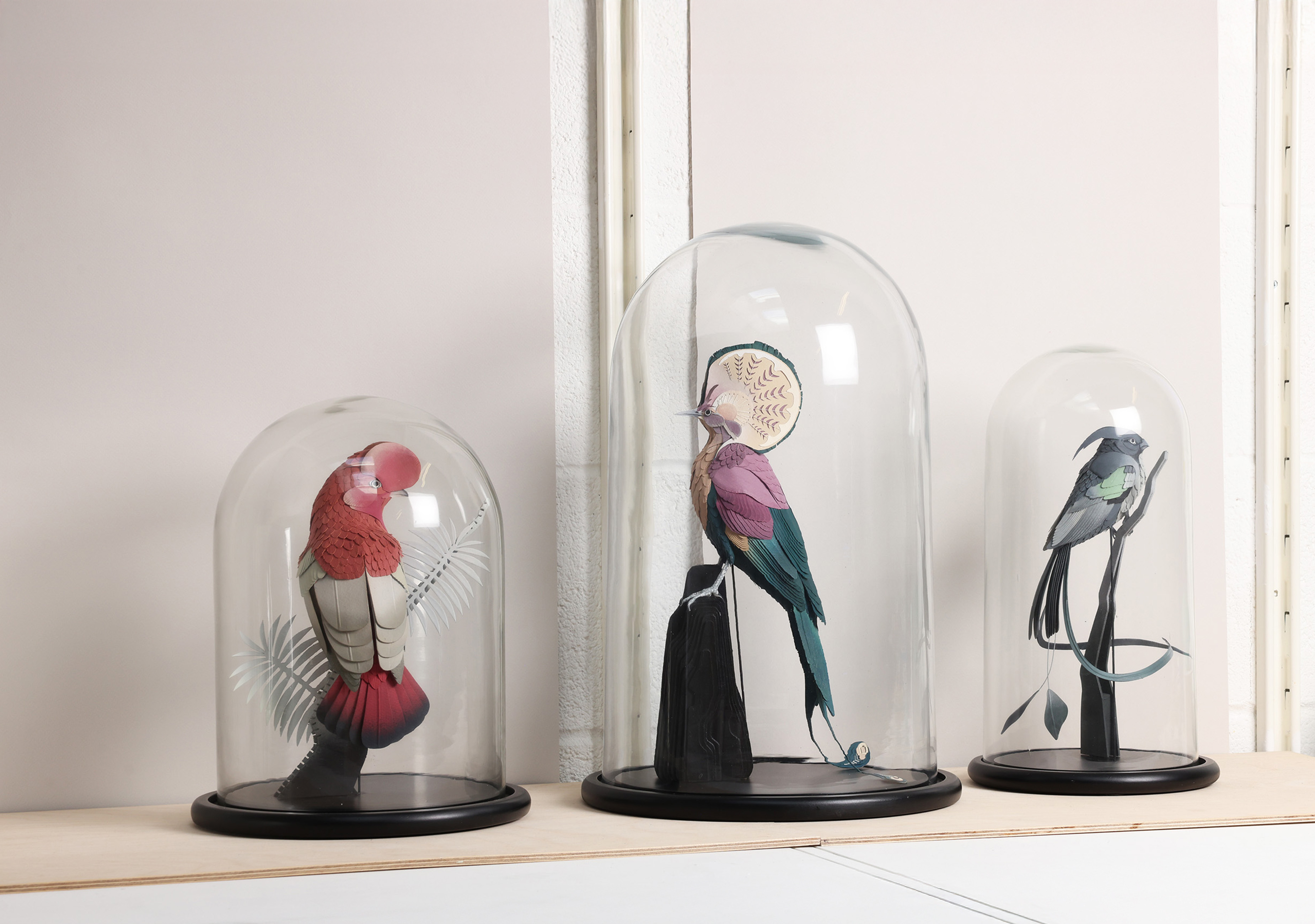 I create bespoke plinths for each of them as well as mount them in a base. This will allow the birds to be protected and place in any space around the residence.